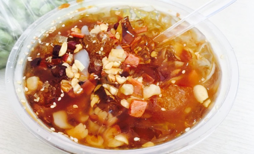我与茜茜合吃了一碗,撑了,不过不满足。于是打包了一碗带回了成都?其中【招牌糍粑冰粉】广受顾客的热衷