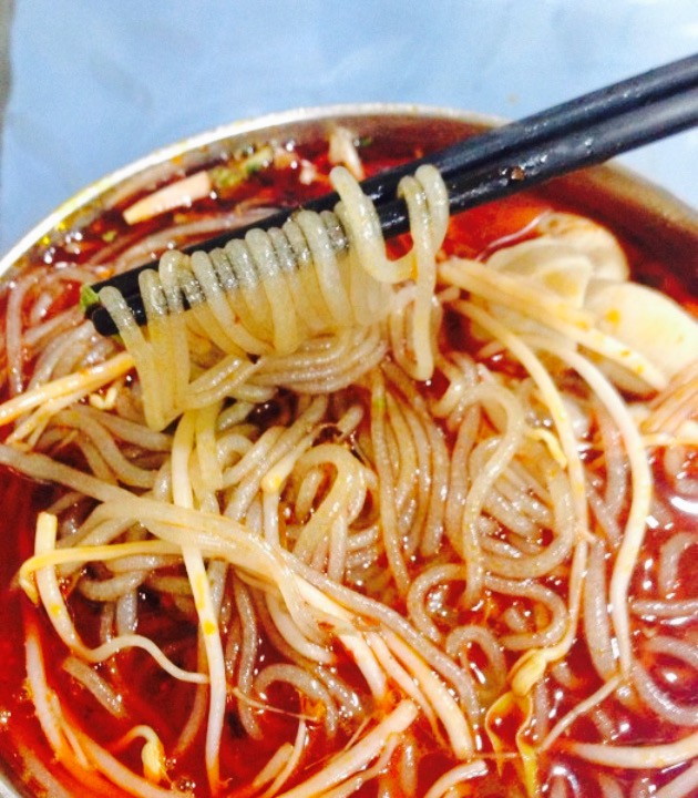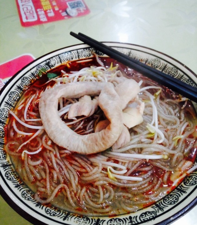 是一家老店了,原来读高中的时候来吃过,不过已经搞忘味道了,每次赶车过的时候看到店里面有一抹多人,所以特意过来重温一下。我到的时候都八点了,人还是有些多,只是生意很好。【小份】9元,【中份】10元。其实中份就是所说的二两,其实量不大,我吃起都不见得饱,所以胃口大点点的还是要的大份合适。我点的中辣的肥肠粉,味道中规中矩,觉得味精味比较重,吃进去那种鲜味有点奇怪,并且也没得好香。整体味道还是可以。是豆芽和芹菜打底哦,要是有不喜欢吃这两个菜的要提前说哦。