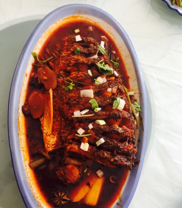 我是十八号中午去的壶口瀑布,我们来到壶口瀑布,已经是饭馆了,在高速上就搜到壶口美食最火的,看到土菜杂粮鱼府的评价最好,我们到那,一条街全是吃的,一个门面比一个大,看起来都大同小异,可我们眼睛一直在找土菜杂粮鱼府,来到店里,人还特多的,老板给我们找了个坐位,我们坐下,要了个黄河大鲤鱼,做了个两吃,确实好,其它小菜不用我说大家也知道,好,他们两口子真的热情,纯朴,山西的人就是好,我昨天到平遥他们也是非常热心。