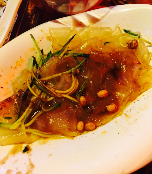 两个人坐公交去的,在辽北路站下车就是,在延安路下车有点远了,要多走一段路,但还算好找。隔壁有不少美味的,长草很久的砂锅粥就在边上,下次有机会要来品尝。环境偏酒吧风,晚上有小提琴演奏,不会很吵,是个可以好好吃饭的地方。他家酱油筋挺好吃的,就是每串都小小的,鱼蛮大一条的,配菜豆腐挺吃的,并且不容易碎,汤底也有些少,宽粉下面的有的都粘锅了,点的招牌香辣,闺蜜不能吃辣,因此点的少辣,本人口味比较清淡吃微微有一点咸,整体好评的一家店。