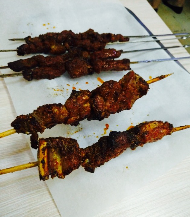 看完电影,朋友说想吃烤羊肉,就突然想到了这家店。每次经过都看见许多食客,还有外国友人撸串。羊肉串3元一串,份量不错,味道很符合成都人的胃口。点了一瓶新疆夺命大乌苏,意料之外的好喝,回甘。但是明明只有4度的啤酒,为啥那么醉人。但是特别提醒这家只有羊肉羊肚羊腰子羊排和馍。没有任何素菜。