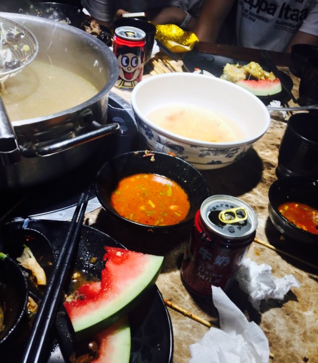 位置,东风路上,易初莲花红绿灯??路口向北,附近就是速8酒店旁边,挺好找的,而且门口好停车??️,挺合适的。环境,一进门肚子就饿了,??,装潢是一股复古风,不错。口味,当然还是牛肉最美味了。牛肚也不错,我们团购的188的4人餐,4个人就是我最能吃了,他们饭量都好小,反正我是好饱了。??????酱料品种还是挺多的,但是喜欢吃辣的我,竟然没有辣油,不能忍啊,好像就一个辣椒??????。望店家在添两个。水果有??橘子和柚子。服务,服务可以,一进门就给倒水。会及时来加汤。可以,最最棒的????????是,全程放的哥哥的歌,大爱,这一点以后就会常常来,??????。