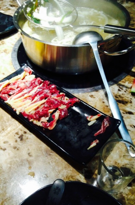来自家门口的火锅。首先地理位置很棒,在易初莲花附近金通梅园东门附近。就是每天看他生意很火爆,去了几次人太多都没吃成。今天请了个假特意早去,好不容易吃上了,5,6人餐,份量很足,最终都没吃得掉,牛肉味道很美味,上去的肉也不懂哪里对应牛哪个部位,大厅还有个投影在做介绍。特别有特点。就是牙口欠佳的人恐怕吃起来会不太爽。有些肯定吃不动,而且吃完一定需要牙签。