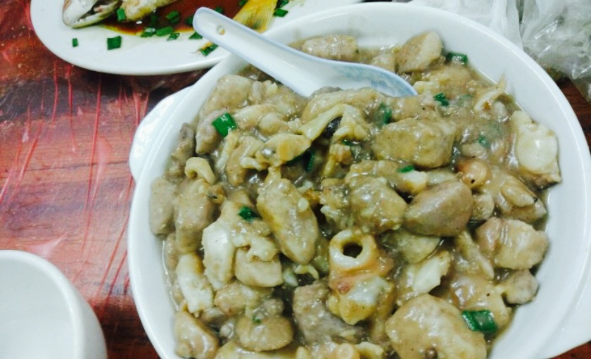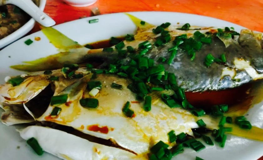 来双月湾两次了,唯一一家想记录下的。像极了小时候的饭馆,吃饭顿饭旁边的台已经翻了一次,都是穿着睡裤的当地人。两大一小点的比较少,基本隔壁本地人点啥我就点啥。墨鱼饼很有特点,里面还有肉的,特别香口,上去就吃掉了,来不及拍照片。份量足,特新鲜,店里老板娘厨师服务员全是女的,觉得蛮整洁的。吃完饭在旁边菜市场买了个柚子,甜丝丝还很清新。三菜一主食一点心才157块。开心的晚饭。