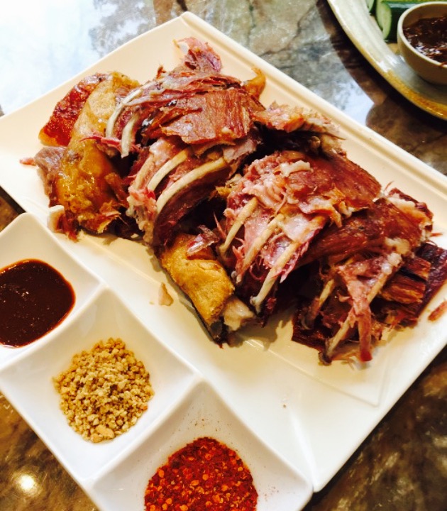 去廊坊出差的时候去吃的,具体位置可以跟着导航走。看上去是一家比较新的大酒店,里面空间很大,还有一个很大的庭院,环境很好,中了各种树和花,就餐的时候可以顺便逛逛。这边吃的以牛羊肉为主,除了点菜,还有烧烤,味道都不错。