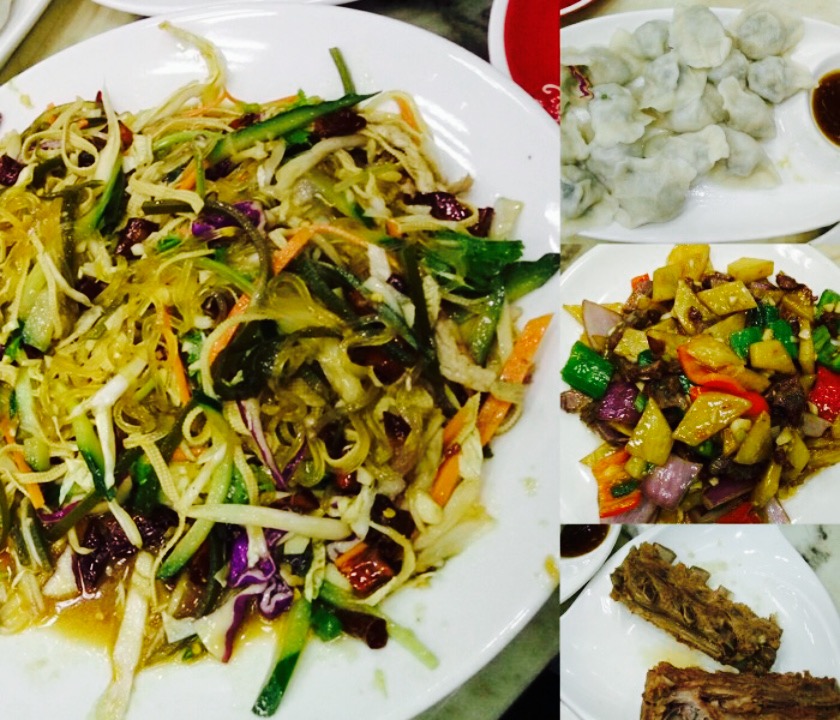 鸡好咸,饺子咸,菜肴好吃,小米粥也不错,两个人没吃完,凉拌家常小菜没动,૧(●´。十分亲切