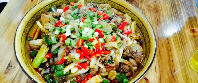 从都江堰座101路过来终点站出来,有好几家小馆子,这家相对评价好些。印象最深的是她家的清新的刚摘的野菜,十分嫩,量也好多,入味。招牌菜豆花肥肠也尝了,还不错。青城老腊肉太肥了些,精肉少吃不出腊肉香味。3个菜加饭110元,有点小贵,整体不错。