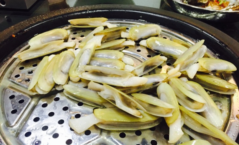 今天赶上第一天开业,五折,哈哈哈,首先,环境还不错,木头的桌椅,小料区是自配的,还有小番茄和橙子可以随意吃,二海鲜品种还行,今日点了花蛤,皮皮虾,青口贝,花螺,蛏子等等,花螺不错,花蛤里面砂子较多,蛏子也不错,青口贝壳不小,里面肉有些小吧,皮皮虾也还行,还点了五谷丰登,有红薯紫薯芋头南瓜和玉米,玉米紫薯很赞,红薯味道一般,单点了金针菇和娃娃菜,量挺大的,蒸着吃口味也不错,还点了三鲜蒸饺,味道很好,一夹还有汤汁流出,还点了香辣排骨,腌料像奥尔良的味道,一般吧,总的来说还不错吧,五折很适合,也还有很多需要提高的地方,希望会越做越好吧。