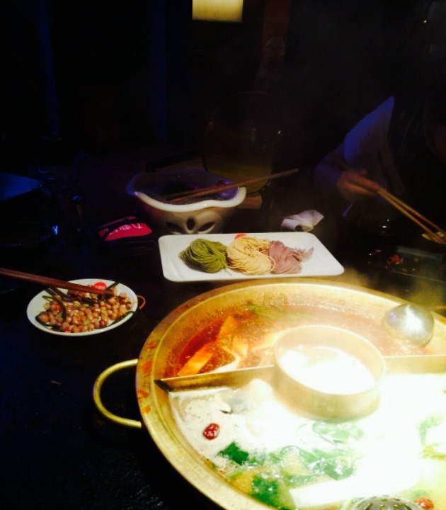 这家店早就听说很火很美味了,特意来感受一下。环境还可以,地方大,食材新鲜,很受年轻人喜爱。川菜路线,除了火锅还有不少四川小吃可以点,十分好。红糖糍粑,还不错,中规中矩。茴香小油条,我觉得是今年出来的吧,也或许是孤陋寡闻,见识少了。已经做熟的,可以直接吃。也可以涮锅,个人感觉还是直接吃比较香。牛羊肉,都新鲜,嫩,爽口。蔬菜豆腐类,也都不错。鸭血,OK的,环境污染这么严重,清清肺,虽然一直不知道胃里的东西是怎么清到肺里去的。毛肚,重头戏了,真是镇店之宝,招牌特色。虽然也就是毛肚吧,但值得一试。切成大片,直接下锅9秒钟,捞起蘸酱塞嘴里,那一口爽脆。一定注意时间,多几秒就老了。