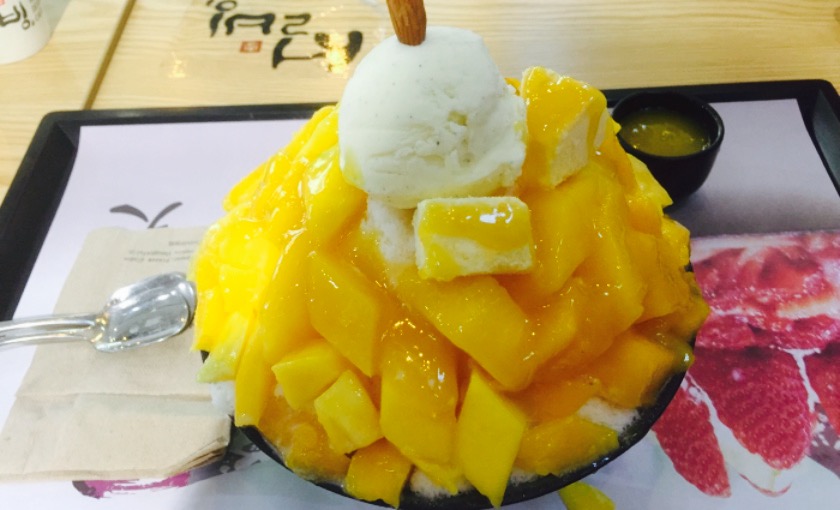 韩国雪冰店新开的在万达二楼,扶梯左侧,布局很简单,但宽敞干净,之前看朋友发过图片感觉不错,一直想过去品尝,这次正好有集赞的活动,因此就积极的参与了一下,我们三点多到的,人还挺多的呢。由于我只集了58个赞所以就给了一个五谷的小碗雪冰,我们又单点了一个红豆的雪冰,还给打了折呢。红豆的样子一般吧,没啥味道,五谷的味道还不错,很香。还有店员都是美女帅哥哦,服务态度棒棒哒。很喜欢小票上的那段话”成功道路上,一定会有失败,对于失败,我们要正确地看待和对待,不怕失败者,则必成功,怕失败者,则一无是处,会更失败。"。