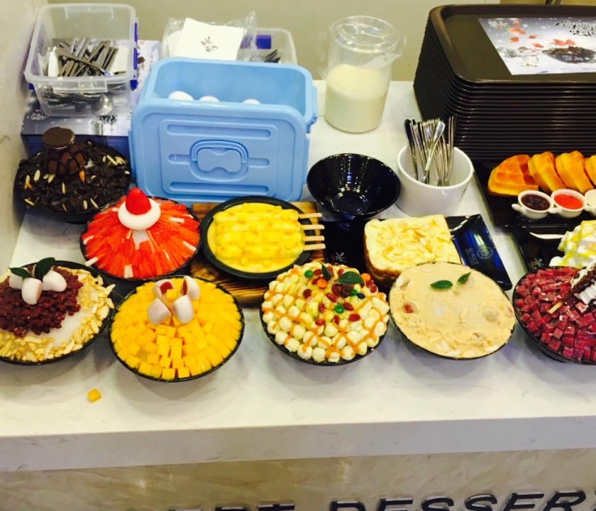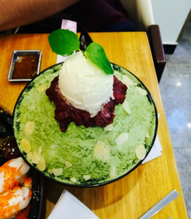 看到朋友圈有集赞活动才知道廊坊也开了雪冰,之前在别的地方吃过,非常开心,和韩剧里的一模一样。集赞只能赠小份五谷雪冰,但是活动内容里并没有解释,只说小份雪冰,以为可以自己选呢,这点觉得不太满意,活动只有两三天,店家打八折,金街里的直接五折,所以感觉老板不够大方。五谷雪冰就是驴打滚口味的,我感觉还可以,之前去过的朋友不太喜欢。自己点了一个大份芒果雪冰,觉得还挺好,没有那么甜,很鲜美。