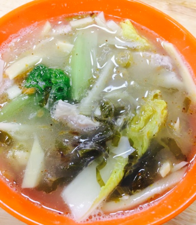 最爱手工面,口感很q,酸酸的酸笋味的汤汁淋上葱头油,很美妙,料很足。真的hin好吃