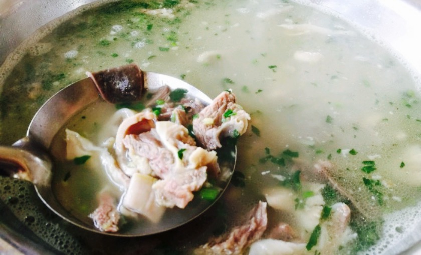 妈妈说羊汤不如原来好喝了,感觉清汤寡水的,却又很咸,我很喜欢吃那个牛蹄筋,觉得特别Q弹,好多胶原蛋白