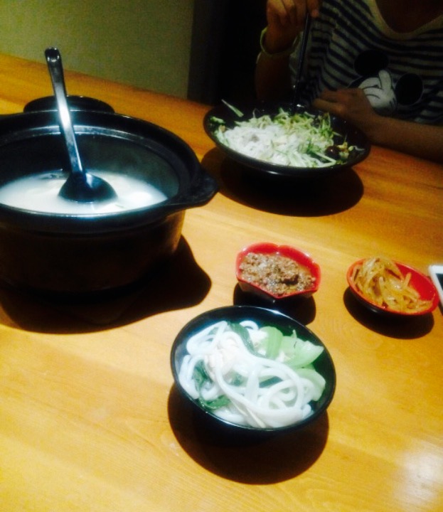 特别卫生的一家米线店,店里空调+电吹风够足,所以不用担心会热,点的LA肥牛米线,另外还有一些配菜和肉酱,感觉食材都十分清新,肉酱是肉+香菇制成的,比较有特色,甜咸口,肥牛米线汤汁很高兴,够入味,这家店成功种草,还会再来的。