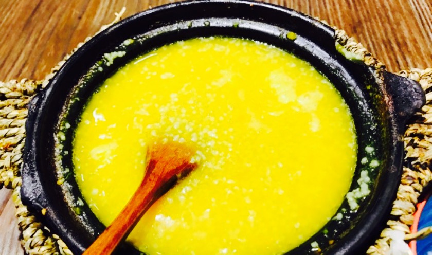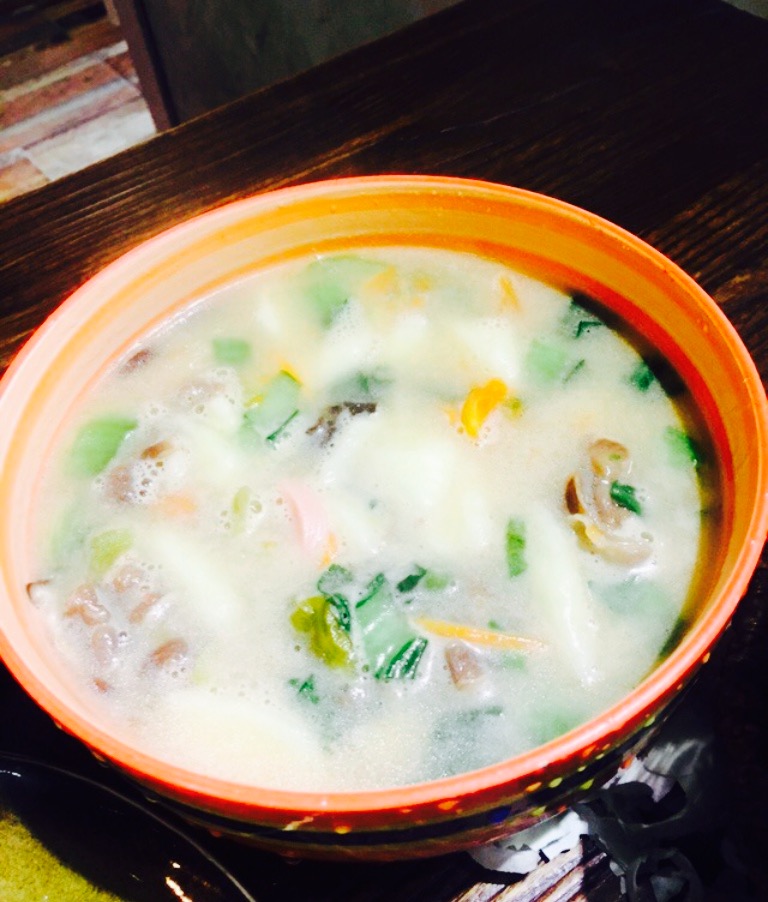 慕名而去的粥店,环境还算可以,简约的装饰。店里粥的种类不少。一眼下来觉得好多都想吃,和老公点了一份干贝鸡丝粥和干贝海参粥,一份锅贴。粥是一人一份的砂锅粥,整体味道偏淡,店里没有类似潮汕砂锅粥的豆瓣拌酱感觉总缺少了一点味道,干贝大概10颗左右,和价位也是成正比的。锅贴特地要求要煎老一点,果真不负众望,淋上辣油和醋口味很不错,皮脆多汁,肉质也很清新,都是现煎的,因此比较推荐锅贴。小菜只选了一个辣黄瓜,口味一般,不鲜美,就不推荐了。还有南乳和百叶丝,下次去准备尝试下。