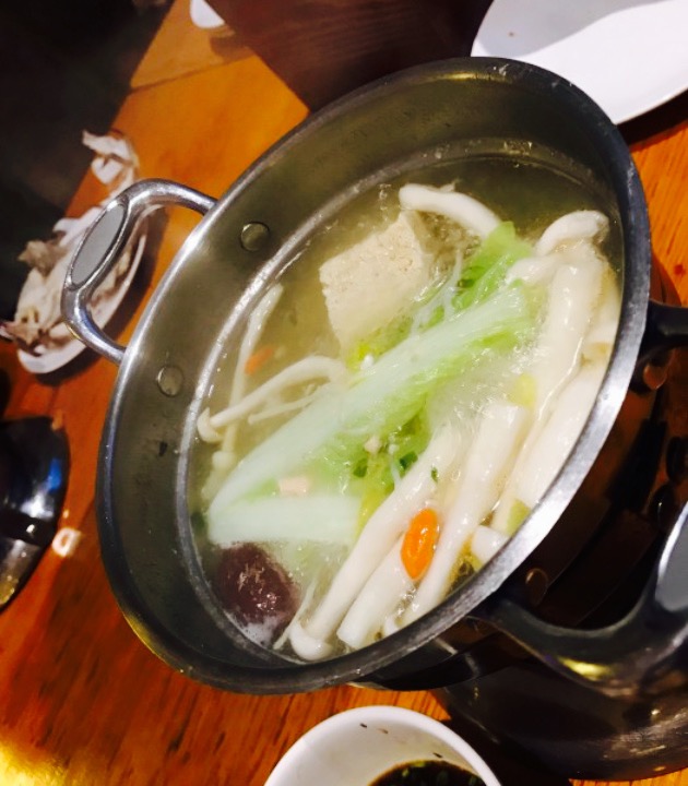 除了小火锅可以涮煮,每桌还都备有烤炉,各种腌制好的肉类及蔬菜任选,蘸上调配好的小料,滋滋香