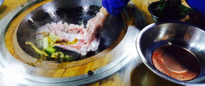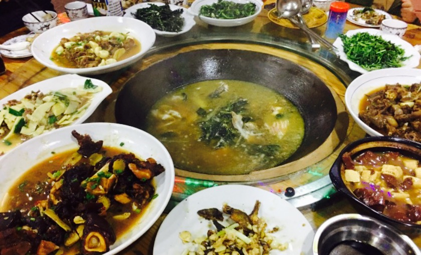 味道不错的一家店,朋友推介去的。挺有特点的,和以前小时候吃的灶头饭一样。鱼汤很鲜,就是口味重了点太咸了。之后自己又加了点热水进去。鱼肉挺嫩的很大一个也很清新。豆腐血好吃,味道也刚好。那里野菜很多,挺清新的也很有特色基本外面都吃不到。羊肉很酥嫩,入口即化。