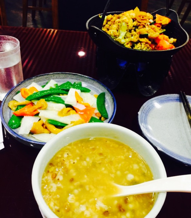 这家点离我们单位很近,每次休息都来这家店吃,这边的粥都特别好喝,各种口味的都有,我是很开心的,唯独菜量不是很大非常精美,菜的味道一般,服务员几乎就没有什么服务,要想喝一杯水都要叫半天才给拿来,希望商家加强培训。