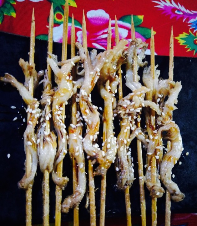 每天上下班都从这里经过,只是一直没有注意到有这么一家烧烤店。上周晚上外卖无意点了这家店的几份菜,感觉味道不错,决定今天到店尝试。晚上十点到的,店里依然座无虚席,装潢得很有特点,因为只有两个人,也没点多少菜,可是味道也都还不错,烤鳝鱼推荐,下次来试试烤青蛙。