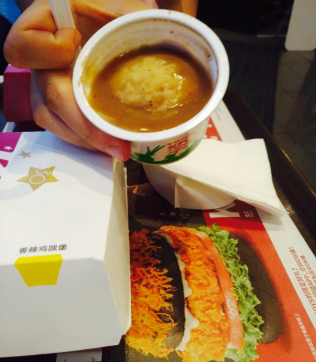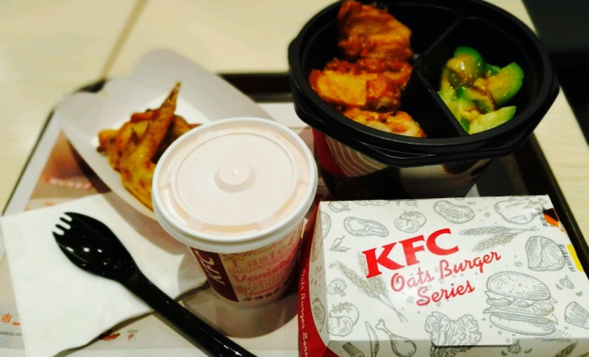 又是一次在咸阳在这家肯德基见客户,地址在世纪大道3米阳光这。这个肯德基是汽车穿梭餐厅,十分合适,早上9点40来的早餐品种还挺丰盛,有【培根鸡蛋脆皮烧饼】,有饭团等等等,有四款粥,还有豆浆,味道还都挺不错的,肯德基的早餐真的是挺高兴的,所有品种都吃了个遍了。一份烧饼一份豆浆,11元,觉得性价比还不错,【豆浆】不是普通那种黄豆豆浆,是黑豆豆浆,特别醇厚,甜度热度都刚刚好。【培根烧饼】酥脆可口,配上培根和鸡蛋还有生菜,的确还不错。这一份套餐吃饱饱吃的超满足。服务也挺好的,手机没电了他家也有好几个充电插头,可以直接插数据线充电,服务生还帮我插好线,态度非常好,点餐员语速有点快听不清,其它都很满意。四星半好评。