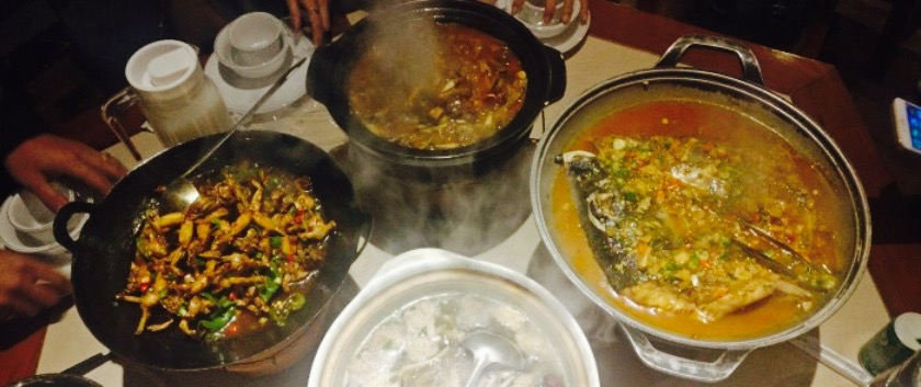 ...一家餐馆,点菜是用竹篮拿签牌,每一道菜味道都入味,熬锅豆腐,土鸡汤,辣椒包肉,还有鱼味道都好棒很有味儿的一家餐馆,点菜是用竹篮拿签牌,每一道菜味道都入味,熬锅豆腐,土鸡汤,辣椒包肉,还有鱼味道都好棒。没有雷区。随意点。价位也很攻略化。
