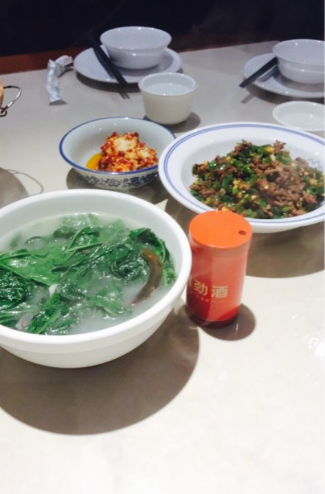 朋友力荐一定要来的一家饭店,很有特点的点菜方法,想起了南京大排档,这样比较直观而且有序。每桌都有一壶米汤,下雨的时候来上一杯很暖,点了一些特色菜,猪头肉炖肥肠那是的确特别美味。酱油干子炒肉也不错,笋子也特别嫩,总之值得再去。