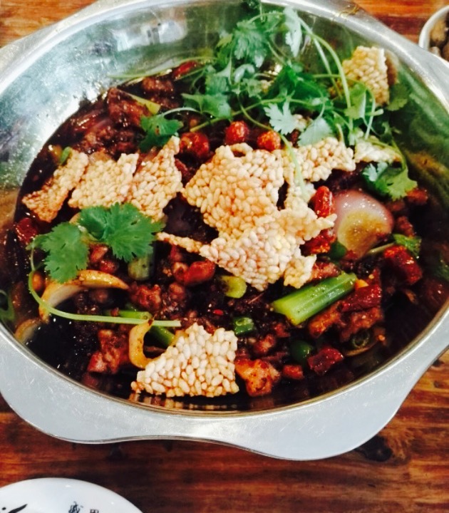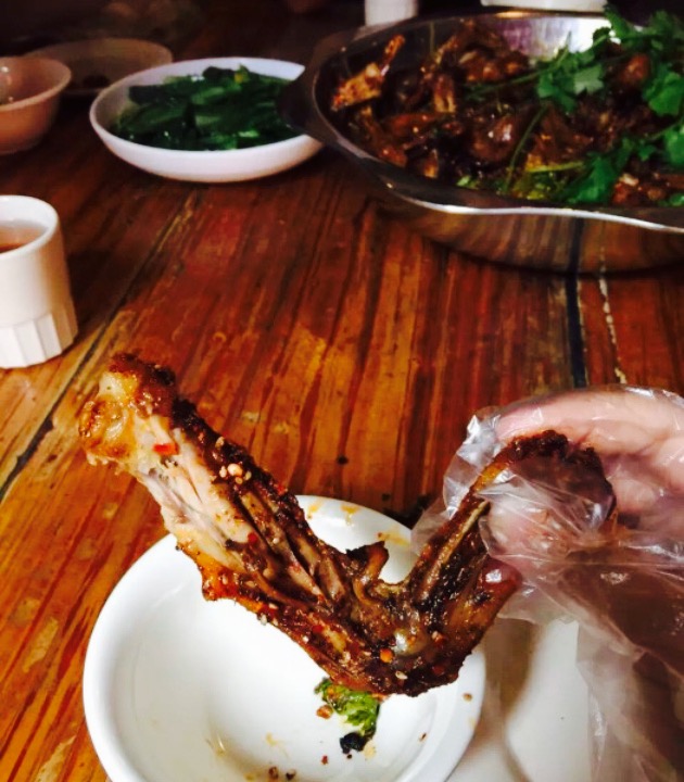 一家卖兔子的干锅店,那一节都是吃的,装潢很普通,不过卫生。去了若干次,只吃过他的排骨。排骨的味道绝对不亚于曾老幺的味道,可以说,更入味儿吧。啃起来很香,还有,不得不提的就是他干锅里面的洋芋片。每次去都要加一份儿。另外就是豆干儿,有些干的模样,但是不硬,也十分的入味儿。推荐。
