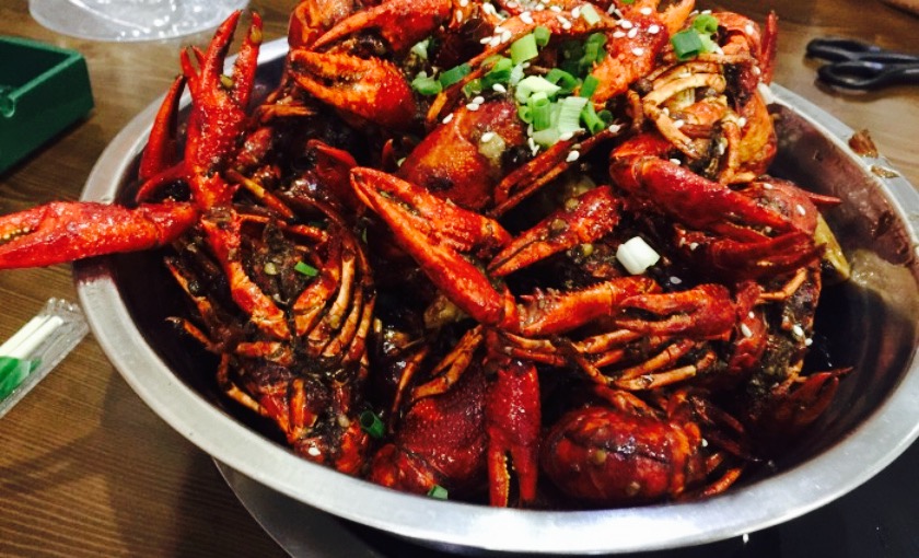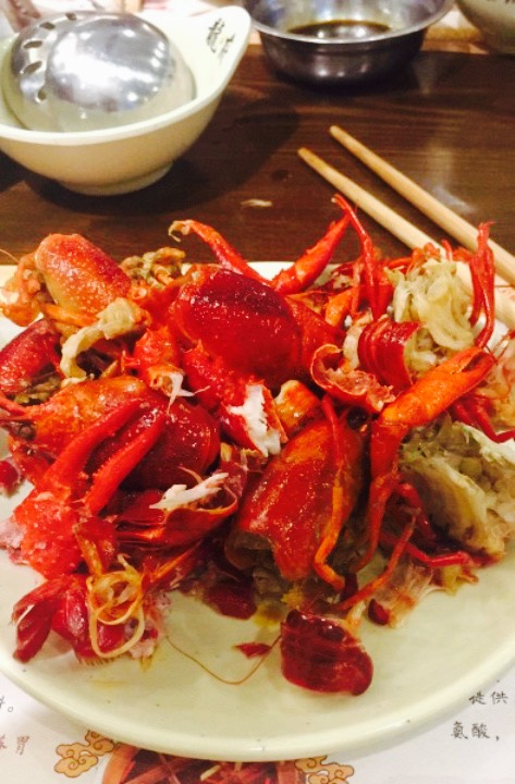 记得冬天在这家吃过火锅,印象特别不错。这次偶然经过发现他家又开始卖小龙虾了。初夏,正是小龙虾肉肥味美时。于是便来尝尝看。对于江浙两省的老百姓来说,基本上是吃惯了江苏盱眙的十三香。不过这家走的是武汉“潜江”派路线---靓靓蒸虾。说起小龙虾,行内有句话叫“全国龙虾看武汉,武汉龙虾看潜江,潜江龙虾看靓靓”。靓靓蒸虾作为全国小龙虾龙头老大的地位已然成为不争的事实了。说到菜品,蒸虾没啥可评论的。潜江小龙虾个头大,肉质紧,壳薄干净无怪味。每一只都足两重,有我一个手掌那么长。做出来的蒸虾自然吃口Q弹爽滑。蘸料更是一绝。米醋,陈醋,生抽,生姜汁,红糖按比例勾兑好,泼一勺滚烫的辣椒油。蒸虾配上这滋味,保证你停不下来。油焖大虾,入口微微的辛辣,淡淡的回甜,还有隐约的酱花香。这是因为店家用爆炒过的郫县豆瓣酱混着辛香料及中草药熬制而成的。麻辣之余,还有独特的酱香。融合了湖北和江苏的双重风味。这种做法在烹调里术语叫“混合型回甘”。赞一个。把虾子都吃光后用碗底酱汁拌入他家另一特色“凉面”里。有点热干面风味的面条吃得满嘴油香,只想再来一碗。因为点油焖大虾的人太多,晚点去差不多就卖光了。所以要吃还得赶早。这边也有十三香,口味相较于盱眙的还是有些不同。没有浓墨重彩的厚油,辣不伤牙,麻不伤口。同时又保留了十三香肥,嫩,酥的特色。香味浓郁,让人食欲大开。冷菜毛豆节也很有特点。毛豆节事先煮熟用糖盐水腌渍过,然后用蒸虾调料加蒜泥拌。吃起来又咸又鲜带微甜。佐酒无敌。值得推荐的一家店΄◉◞౪◟◉‵。