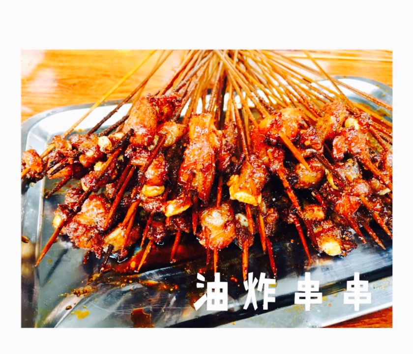 嗯这家店真的看起不像是很火的那种,因为比较晚的时间了,人还是比较少,只是去吃了才发现确实还是很鲜美的。推荐四季豆,土豆片,藕,还有金针菇。炸得酥酥脆脆的,就是油有点多哈。吃平菇吃得出来甜皮鸭卤油的味道。吃了各种肉,都感觉还不错,唯一认出来的几种就只有牛肉鱿鱼和鸡皮排骨之类的,其余的也不知道是啥,貌似有掌中宝吧。反正都很好吃哈,比成都的入味。性价比还算高的,才几角钱一串。