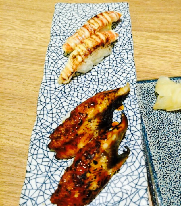 去了两次了,并成一次来写,简直性价比不错,会再来的商店。店面不大,第一次去超级热,今天去的时候没开空调超级冷,不知道怎么回事。店员服务不错,很积极热情。鸡翅不错,她把一个鸡翅砍成两段了,方便吃。牛舌超高校级好吃,就是对我来说有点咸,也许是下面蘸酱的关系,厚厚的牛舌萌萌的,不错。鹅肝寿司,一次只能吃一个,吃多了容易腻。一口闷不错。牛肉锅,料挺足的,两个人吃不完的。牛肉炒饭,美味的,就是有些油,里边的料也很足。