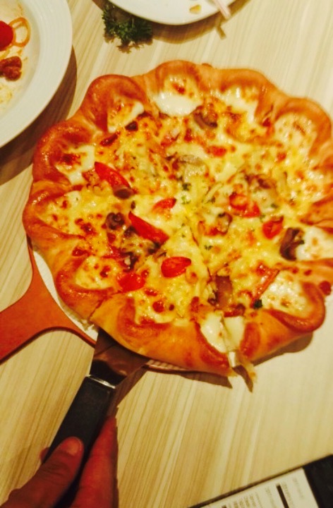 今天过来万达这边,看到这边的必胜客,从外面看就感觉里面非常整理,并且也很温馨,很不错的样子就抱着试一试的态度过来尝一下,结果发现很值得一来哟。里边的服务超级好,服务生都很贴心,很有生机,我点了一个鳗鱼披萨??的套餐,里边的木鱼花真的会跳舞呢,既有颜有有料,棒棒哒????适合三五个朋友过来聚餐,情侣也适合哟,下次还会过来。