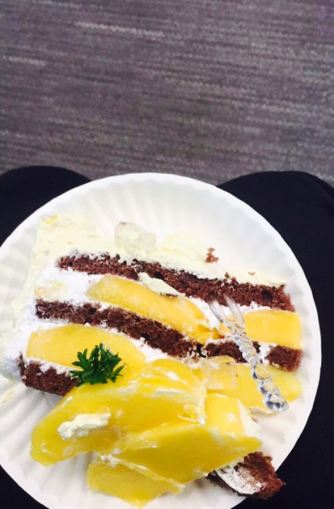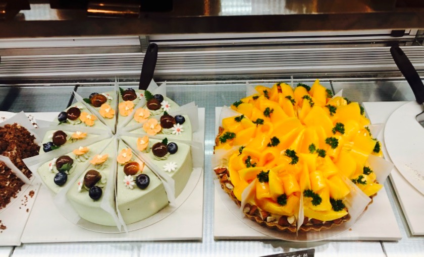 颜值比较高啊,经过就忍不住鲁几块。选择了双重芝士蛋糕,上面的芝士块简直了,味道还不错,很醇厚。巧克力香蕉派,香蕉就底下一层,两个口味融合的一般。椰子味的这个蛋糕名字忘记了,很特别的里面有柚子,所以酸酸的。里边夹着的椰子冻一样的味道不错。不甜腻。喜欢酸一些的应该感觉还蛮特别。价格都是35一块。还有其他很特别的蛋糕。打包回来,附有冰袋。