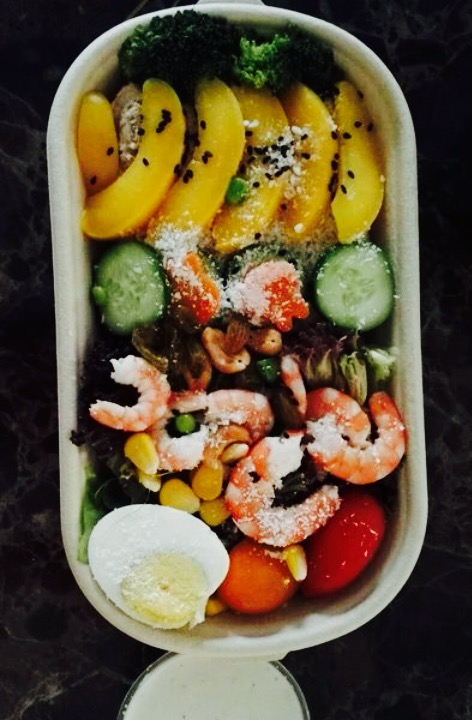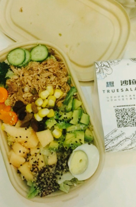 目前觉得沙拉外卖做的最好的一家。金象城的小店 。几公里以内可以提供外卖 。远的就是自提。提早一天预定的 。在约定的时间会送到 。包装使用的环保纸盒质感很不错 。配一小盒沙拉酱 。沙拉打开还是出乎意料 。 。搭配的特别漂亮感觉就像是宣传海报上的一模一样 。食材特别足 。都很新鲜色泽都很鲜亮 。金枪鱼量很多 。牛油果大概有半个多很鲜美。