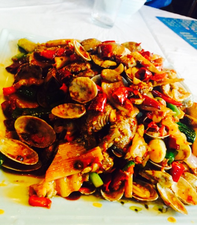 这是一家开了蛮久有名的肥肠店。一楼是本地的小吃,二楼是海鲜排挡,都是一个老板娘,小伙伴带我来让我尝了牛肉的荞麦面,很是入味。海鲜都是到对面的海鲜市场现买现做的,实在是很清新,味道也是很赞的,这个算是我在成都吃的很可口的一家海鲜大排档了,点赞哦。