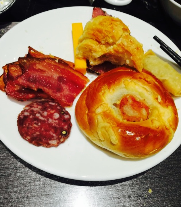 ...浆,牛奶,小米粥,八宝粥,各种果汁,有纤维谷物很赞,青菜略少,晚餐有服务员烤肉送卓,服务蛮好的