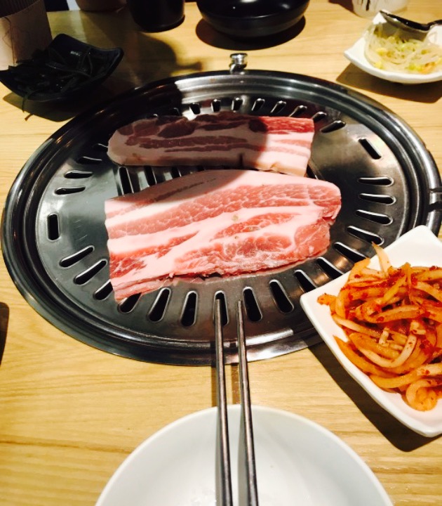 必须五分,难得吃到正宗韩式料理,记得那时候还叫小食光的时候,在郴州培训,经常点他家的外卖,今日和朋友一起去,觉得吃到蛮晚的,还送了一碟蔬菜沙拉,入味。石锅拌饭,大酱汤,鸡蛋芝士卷,肯定要趁热吃。为了等朋友,烤肉我们很晚才烤,不过沾海盐简直停不了口。朋友点多了,觉得有些浪费了,强烈推荐。