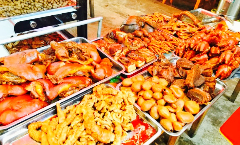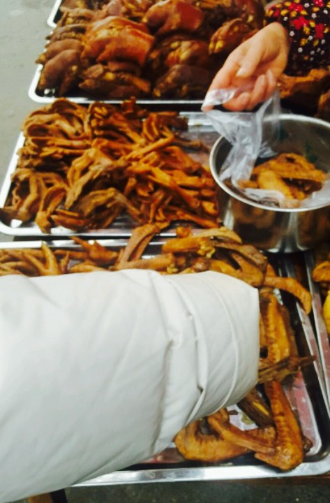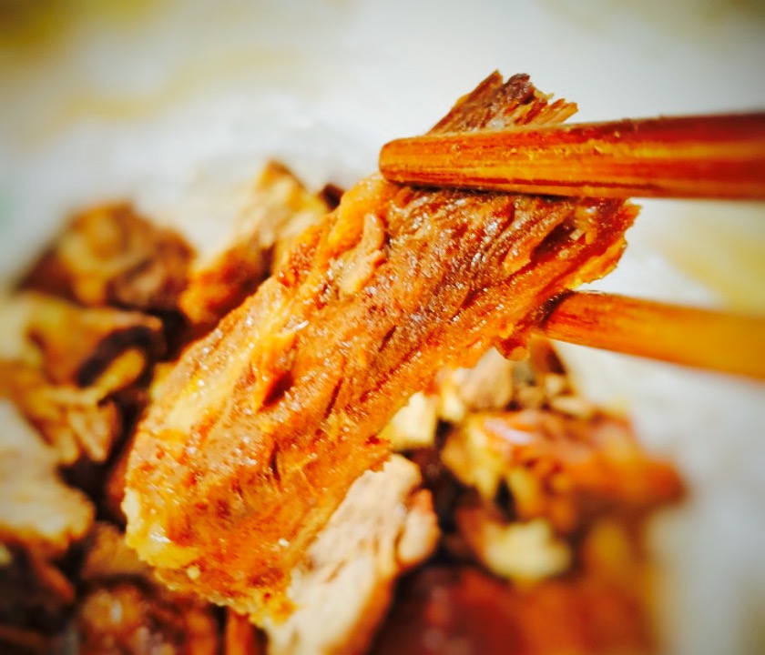 巧巧遇见 。2。慕名张醪糟,毗邻。R,现在张醪糟坐下,点餐。D,停好车过来,手里提车一大袋食物,莫名。打开一看,哇咔咔,卤排骨,卤鸭翅,还有干拌牛肉。D,说,正好看到才卤好。嗯,热气腾腾。卤料味道很正,也不会有很重的香精味,过盛出药味。挺好。肉质软硬适中,不失嚼劲。排骨是肋条的部位,带些脆骨,很开心。牛肉,干拌,辣椒面很香。牛肉也化渣。干香的很好。打包的这两样,确实认为好吃美味的。吃完去开车,看到不起眼的店铺,一溜排开腌卤腊菜。百年老卤的字样,也算当得起。2017,10,01 。记。