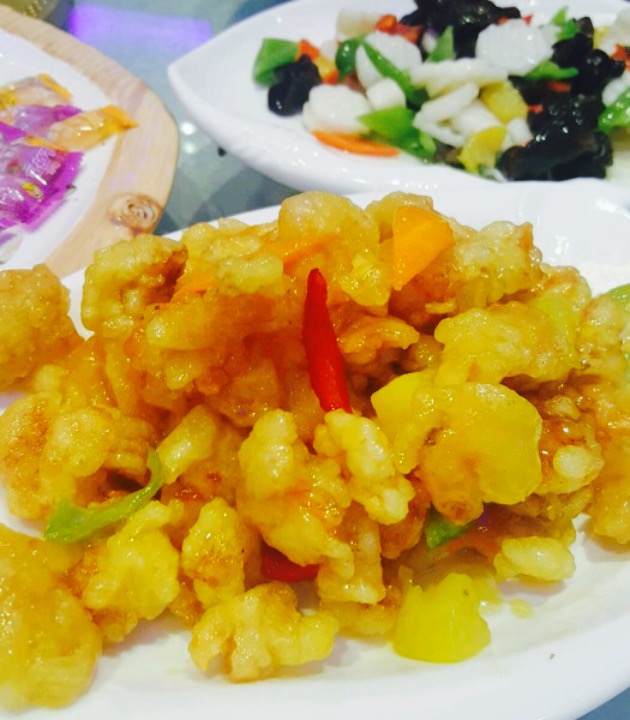 朋友宴请亲朋好友在这边办升学宴,只有四桌,现在饭店里面和以前的饭馆装修变化不大,还是以东北菜为主打。我觉得我们吃的这一餐中值得推荐的菜品是小鸡炖蘑菇粉条,的确有熟悉的东北菜的味道,尤其是小鸡,一定是本地鸡,肉炖到火候了,烂而不散。再就是推荐他家的凉菜,凉菜也是地道的东北拌法,吃起来很是过瘾爽口(⊙o⊙)哦。鱼肉炖的一般,不知怎么的,我吃就是一股中药味。有一道菜是锅包肉的做法,里面有两种材料,肉和虾仁,酸酸甜甜,也很爽口。其它的菜品就是攻略口味吧。
