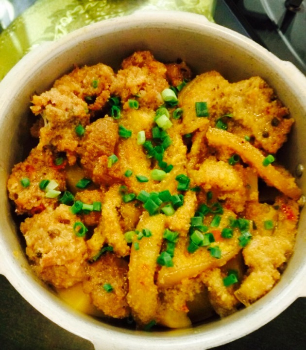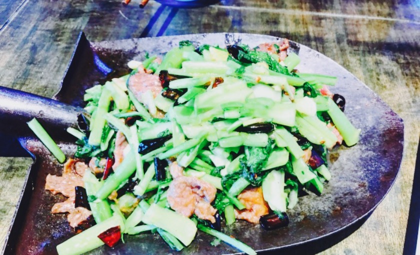 ...望,装菜居然是用一个簸箕装的,应该是簸箕吧,挺有新意的,不过接着朋友就跟我说很多地方都是这样的