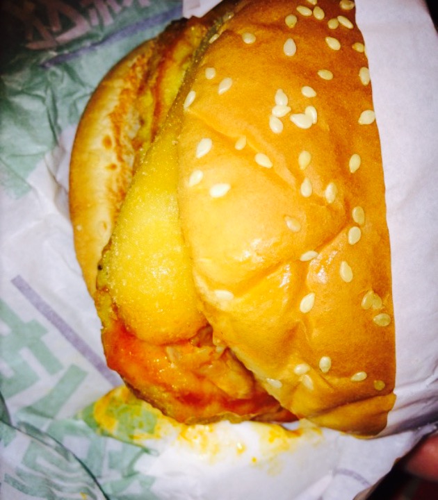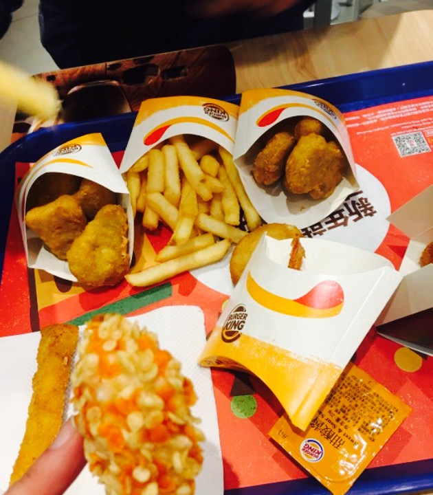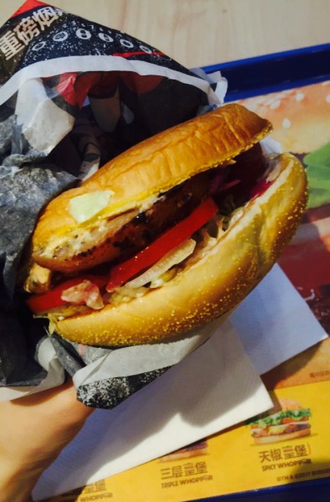 人多,动作慢,等好久都不给我点单,桌子上面也是脏,没有人打扫,不知道是特殊情况还是日常,和我记忆中汉堡王的形象不符。芒果鸡排汉堡,芒果觉得像是罐头的,不新鲜,红色的酱味道也有些怪异,鸡排是辣的,甜的辣的总之很怪异。芒果慕雪还是不错的,但感觉芒果味略淡。