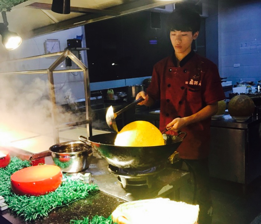 食在麻将人是合川的朋友带去吃的,地理位置比较偏,位于滨江路,用餐的同时透过玻璃窗就可以看到江。比较有特点的一家店,是麻将主题,点菜也是用麻将,服务员穿的衣服也有麻将名称。烤猪脑壳肉很可口,很香,肥而不腻。蒜香铁板牛肉也很鲜美,浓浓的蒜香味。很赞????????。