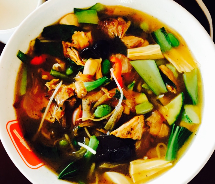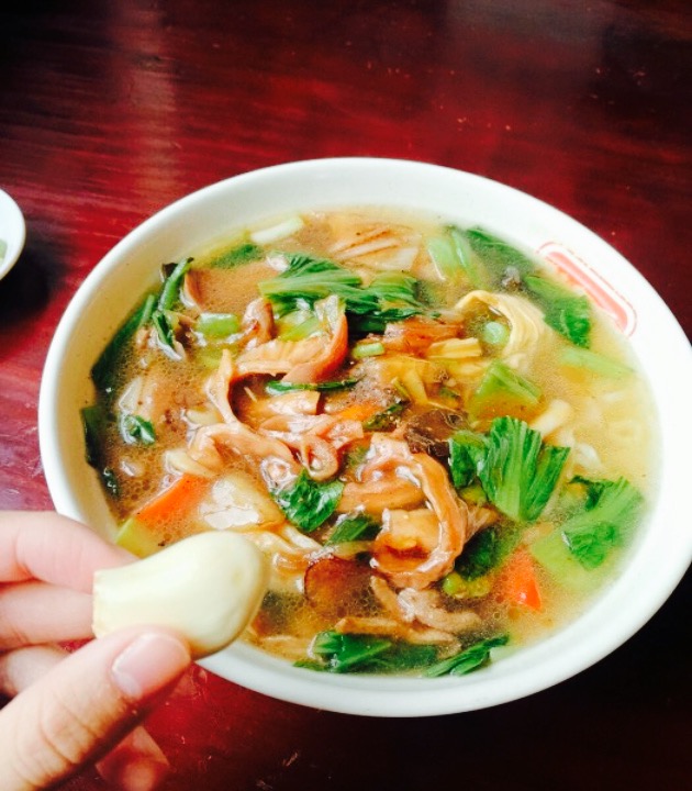 这家奇贤面馆也是一家老店了,他家的都是手擀面,早晨8点多到店里楼下位置基本都满的,店里的生意不错,点了淮安特色的长鱼面,儿子喜欢吃长鱼,味道很好,面条劲道,有嚼劲,时间长了也不会烂糟糟的,平常我都不怎么吃这样的面的,都只吃银丝面的人只是这次吃下去感觉这次的试试还是不错的。