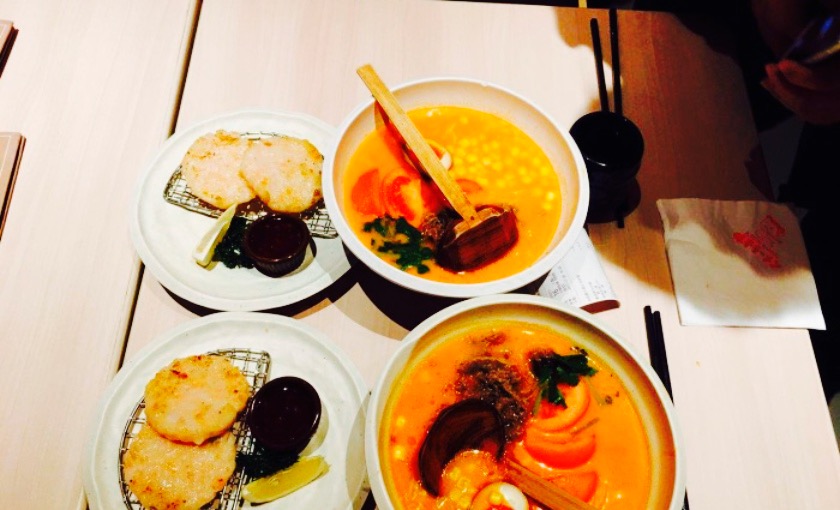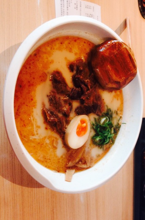 啦啦啦啦啦去吃拉面了,一见门感觉和以前在上海的装修不太一样现代感比较强,上海的相对而言和风更浓厚些,可是我今天是来吃拉面的,摊手。有多种拉面可选,还有牛肉饭等,饮料点了沙棘汁。拉面有叉烧,青葱和豆芽等配料,原本以为自带紫菜,可是没有。溏心蛋的蛋黄色泽金黄,略微有些流淌下来,口感细嫩。拉面的软硬度不错,劲道爽滑。汤底醇厚,但是,喝下去的时候稍稍有些颗粒感。炸猪排色泽金黄,一看就是一副卡路里超超标的模样,吃了感觉罪恶感蛮大的算了吃完再减,手动再见。还有我最喜欢吃的烤鳗鱼,此时元太上身,呃,智商同时降为元太,唯一不停环绕在脑袋里的就是好好好好好吃。浅谈一顿完美的拉面,鞠躬谢谢老板娘。下次再来。