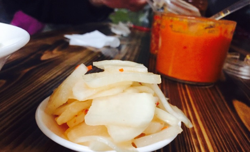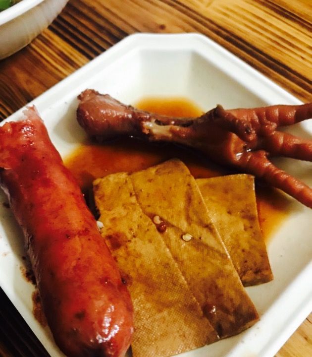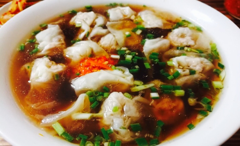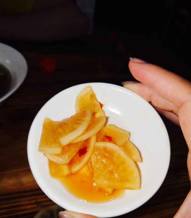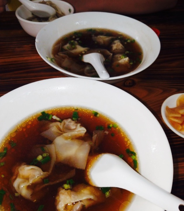小店布置的挺新鲜。这边基本都是当地人带着来的。馄饨果然名副其实,那真是薄皮大馅。馄饨皮薄得透明可见,馄饨馅的肉质香嫩美味??小菜也值得推荐,南方特有的油渣,放入汤中十分的香。而腌萝卜片则是酸辣解腻。简直是完美搭配。