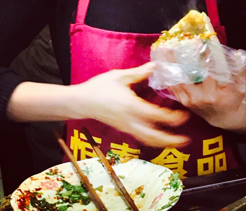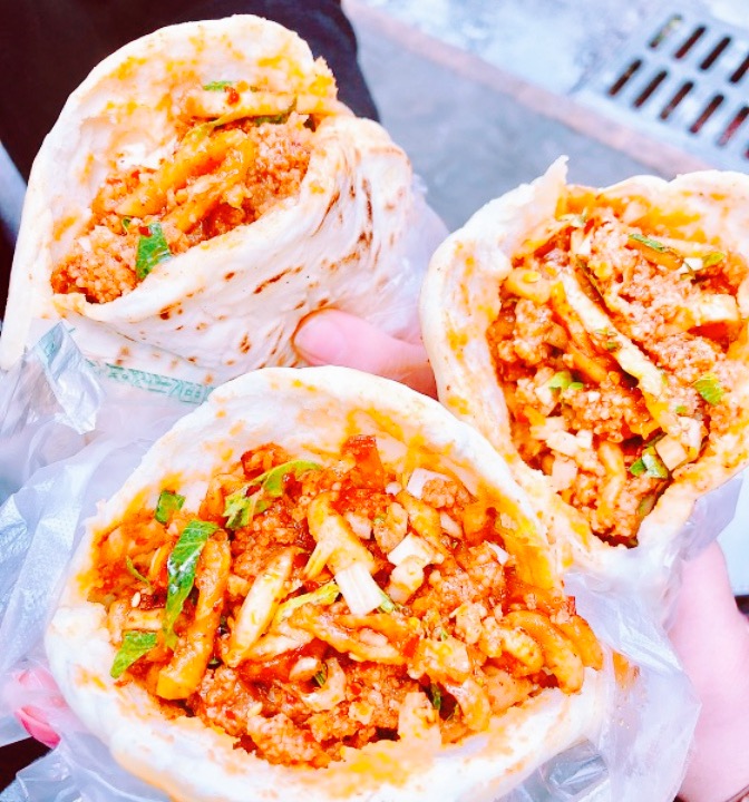 17年6月,乐山第六站,乐山吃吃吃的最后一站。实在是意外发现的一家牛肉咔饼店,那时去吃烤鱼片的途中,看出这家店排了好几个人,就想着买来试试,所以说,出来吃饭,看着排队的就去凑个热闹,哈哈。排队的都是乐山当地人,所以肯定味道不错哦。抱着尝试的心态,结果确实没失望。太开心了。比之前在乐山吃过的都入味。里边夹了泡的萝卜丝丝,有点回甜,吃起甜辣甜辣的,外边的馍馍也多香的,最终吃了烤鱼片,都还忍不住回去一人买了一个,在车上就吃完了,太开心了。而且很公道,6元一个,牛肉超级多,加了两小笼牛肉,下次去乐山,我肯定还要去吃这个。