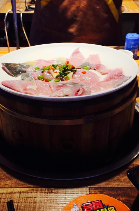 首先来说下地理位置,地理位置在华阳的一条街上。店招非常的大,所以特别好找到这家,一条街都是吃的。这家到7点都要排队,所以可见这家的生意特别不错。这家的生意不错,我想可能有几个原因,第一,诚实的店家。第二,分量真心的大。喜欢这家的特色木桶的最下面放的是石块,然后用来保温的,然后吃着鱼的时候还不会凉,这一点我感觉做的十分,亲切。这家的汤觉得十分的香,嗯,但是可能最后吃的化痰有一点咸,最近一在之前就先喝一点汤。