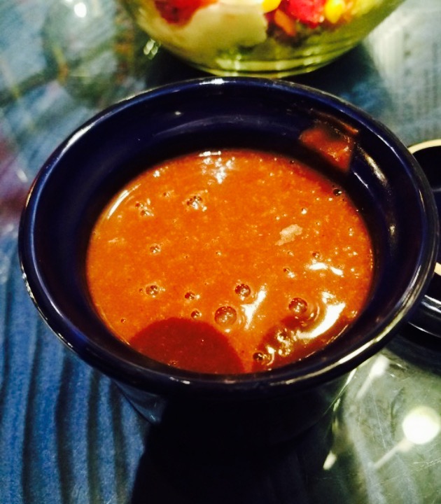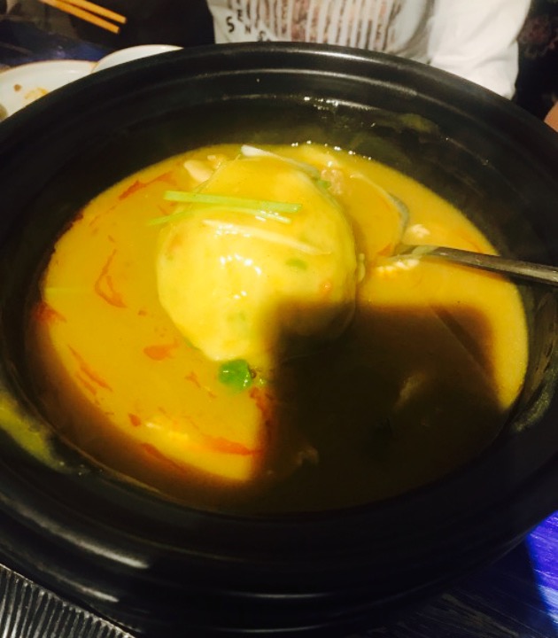 首先,位置在摩尔城九楼(要是没记错的话),一上电梯就会见到,装潢很有特色的,门口的植被很好玩,多数是真的(⊙o⊙)哦。其次,服务也挺好的,里边的布置给人的样子也很舒服,有种古典现代结合的美。点的这几个菜味道都不错,尤其是这个水果沙拉,实在是第一次吃到这种沙拉里有面包快的,很赞,很大份。对了,胶原鸡需要提前预约。