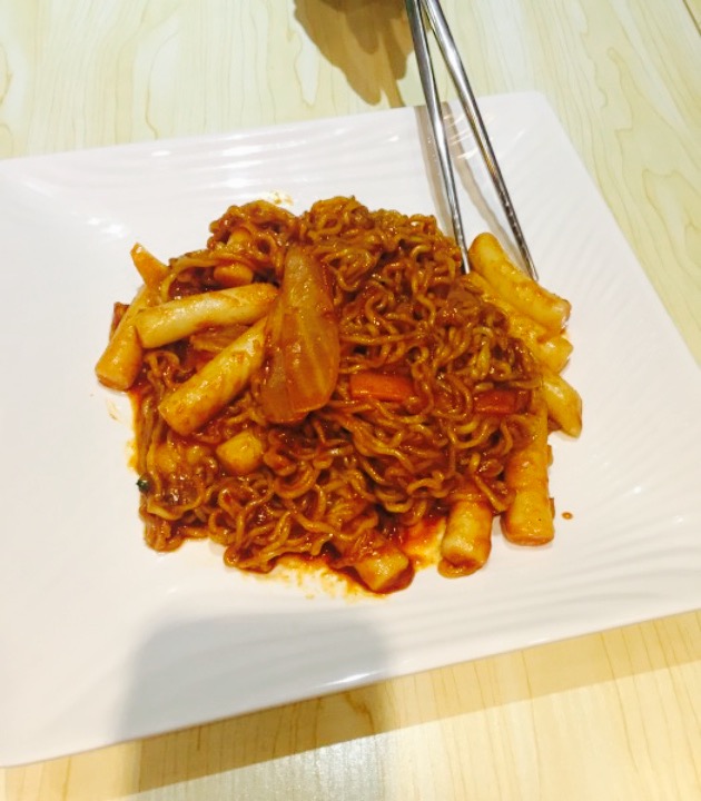 地理位置不错很好找的,门口就有一个直梯,开车停地下车库容易找,环境简单大方的那种。去的时候快6点,店里除了我们就一桌,也是刚来的。服务态度也很好,有个收银的时候都是笑笑的,应该是老板吧。给人觉得很好,辛拉面炒年糕拉面很爽口,有点甜甜的那种,我喜欢吃甜食所以爱吃,老公就不太喜爱,只是牛肉拌饭老公说不错,单独拌的辣酱老公不够又多要了,拌上刚好,鱿鱼拌饭就三块鱿鱼,有些硬,觉得一般,没有味道,总体来说挺好的,下次可以再品尝别的。