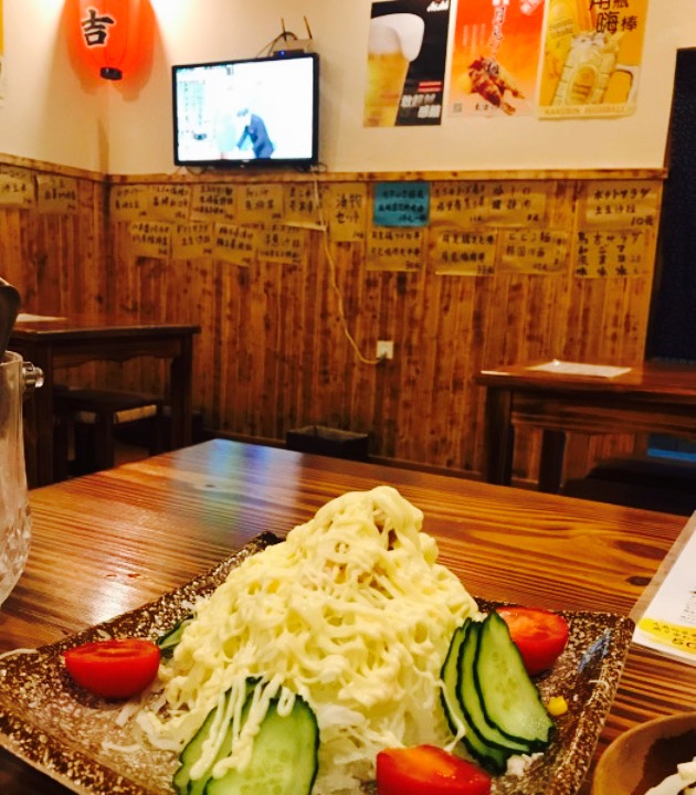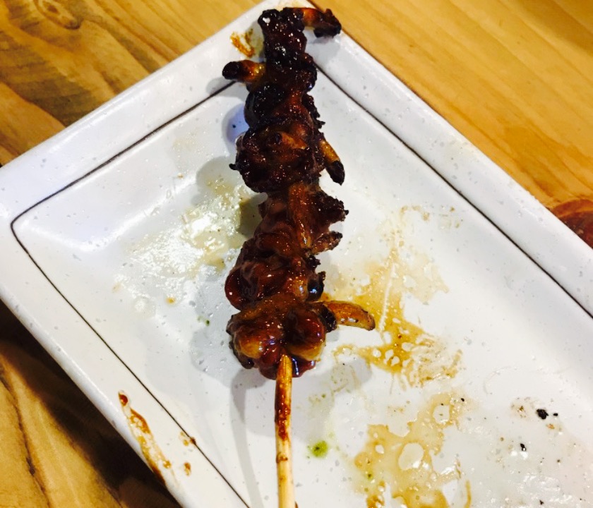 星期五的八点,店里只有一桌日本人,很宁静。镇江的日料几乎只能做自助餐,单点没什么拿得出手的,更别提没迟到过好吃的烧鸟,鸟吉的出现终于让我燃起了希望。点了份鸟吉浇汁饭,两串盐烤鸡皮,一串盐烤五花肉,一杯威士忌嗨棒。吃到五花肉的第一口就几乎要流泪了,白肉的部分烤出了丰腴的油脂香气,入口半脆半酥,咸淡正好。反而是烤鸡皮没有想象中好吃,油脂欠缺了些,口感有些单薄。鸟吉浇汁饭里有一串鸡皮一串鸡肉和一串鸡肝,都是酱烤的,伴着葱花很加分,底部酱汁也够,不会干。嗨棒里酒加的不多,苏打倒是用的三得利,心情大好。我一个妹子怎么吃了如此多。老板似乎是日本留学归来的,真喜欢呀,镇江有了如此一个喝酒吃串的去处,再也不用担心无处可去啦。