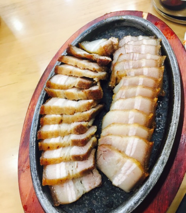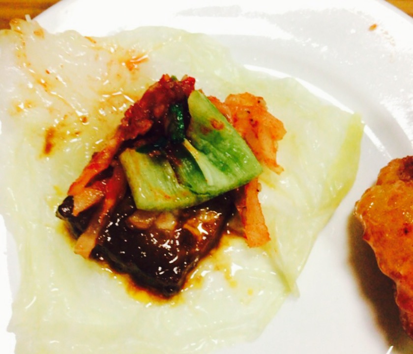 2017年回家第一天,第一顿饭在天仙包饭。周六中午人巨多,之后的都需要等位。#五花肉包饭#,肉肉肥瘦均匀,配了一大堆的蔬菜和两碗米饭,包饭酱很神奇,上桌的时候像一小碗汤,之后就变成酱,很浓稠了。美味。#明太鱼炒杂太#,明太鱼过油之后变的酥酥脆脆,配合辣椒干一起炒,很辣很舒服。推荐。#煎沙参#,辣酱红通通的但不辣,很美味,但沙参个头太大,不太好咬。#海鲜饼#,软糯,有淡淡的甜甜的,很很入味。每桌都赠送一壶马克力米酒,一壶喝完再续才收费,很香甜有点点气泡,十分美味。